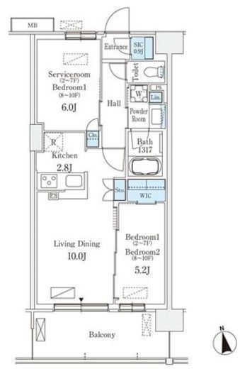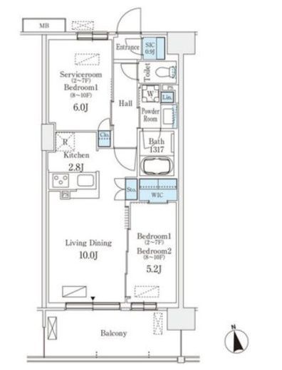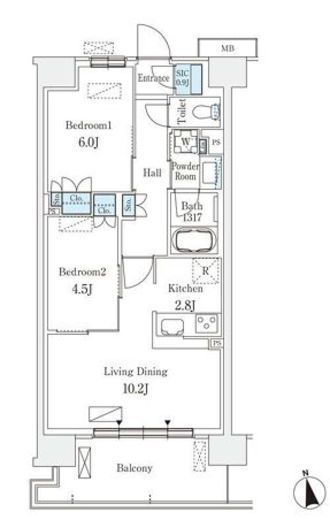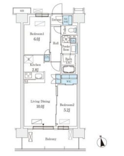 10階 | 206,000円 | 2LDK | 54.6m² | なし 0.5ヶ月 |