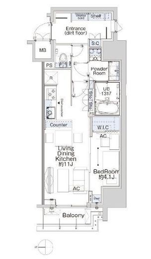 13階 | 170,000円 | 1DK | 25.3m² | 1ヶ月 なし |