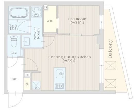 坪単価 16,388円1LDK